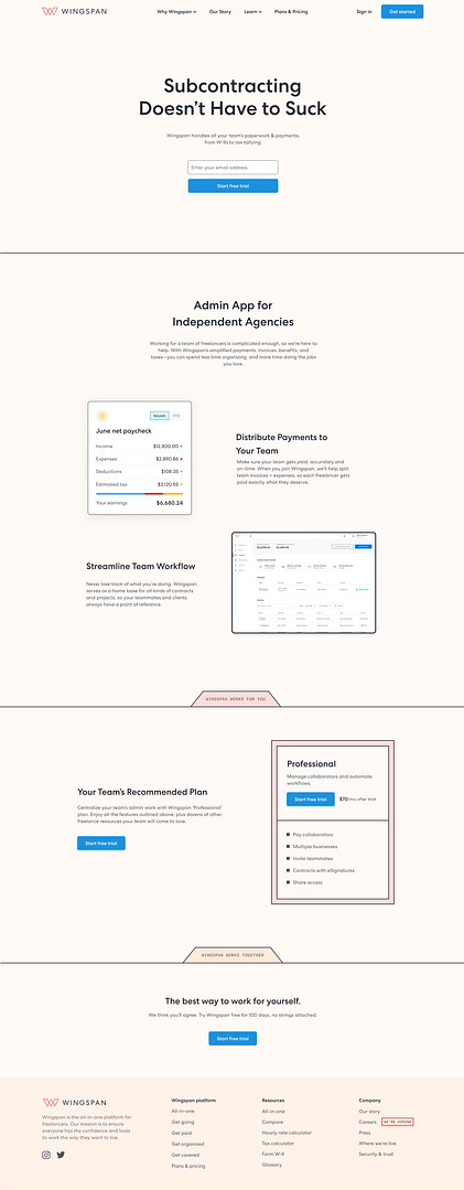 Because freelancers come from a wide range of occupations, we identified two separate target audiences for the marketing funnel. These two audiences were targeted separately with ads that drove to custom landing pages that highlighted features that are most applicable to each audience as well as a suggested membership plan tier.Â